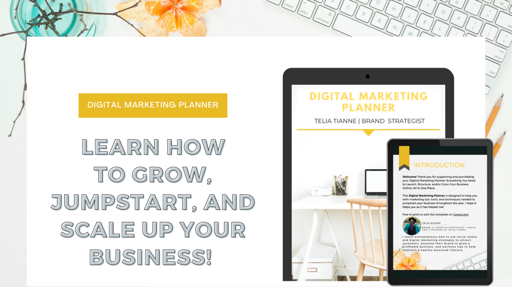 This Digital Marketing Planner is designed to help you with marketing tips, tools, and techniques needed to jumpstart your business.